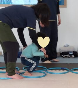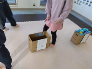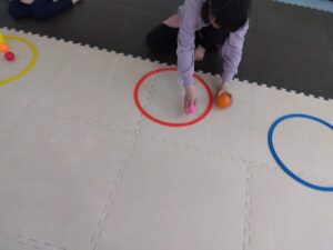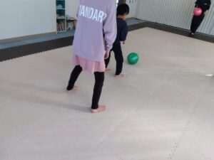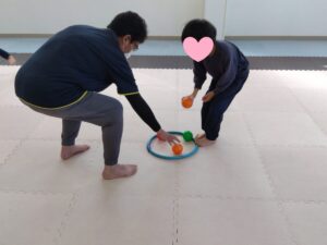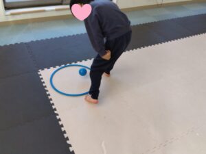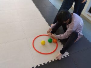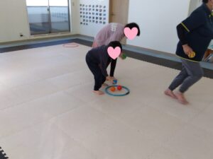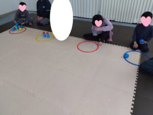 真ん中のフープやお友達のフープからボールを集め、