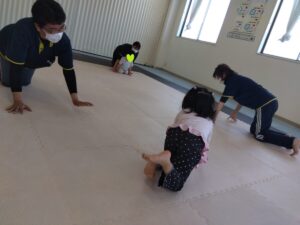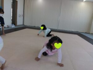 最初は、みんなでイヌさんに変身して鬼ごっこです。