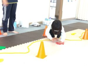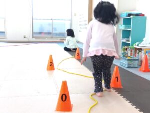 お友達と協力してナンバーコーンまで進みましょう♪
