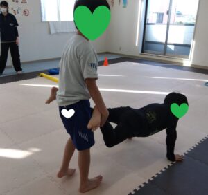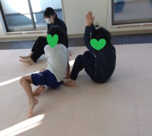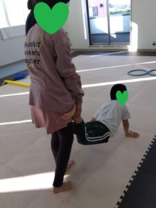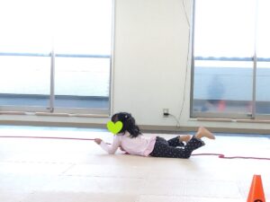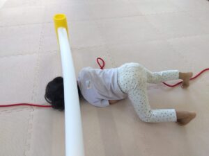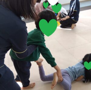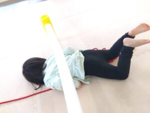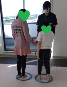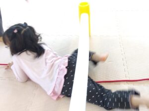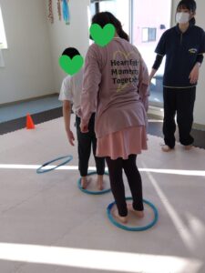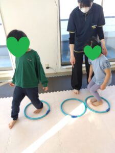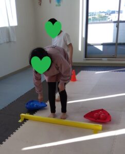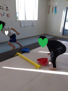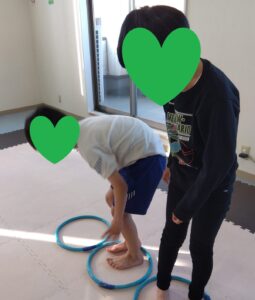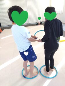 後ろのお友達がフープを取って前のお友達が道を繋げます😳