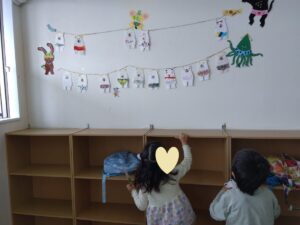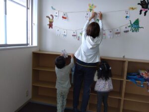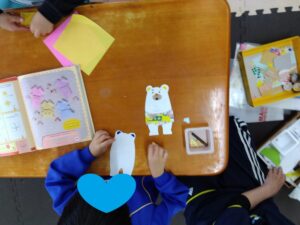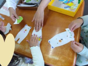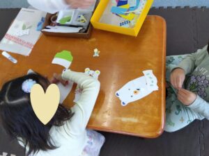 出来たシロクマさんは自分たちで貼りたいところを決めて貼りました☆彡