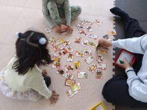 最初は各々遊んでいましたが、カルタゲームが始まると参戦!!