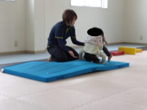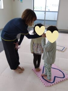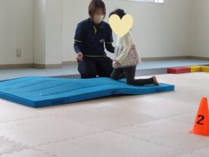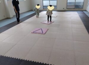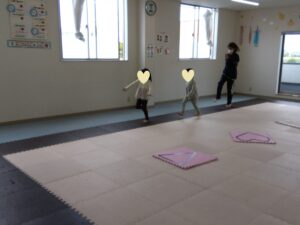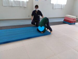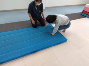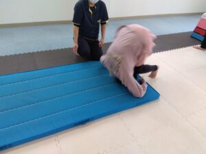 マットでは、前転を行いました!