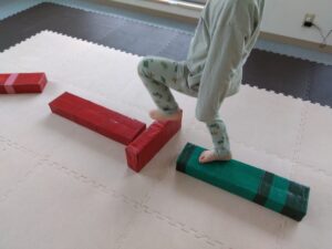 平均台の道は、途中穴があいていたり、橋をまたいだりしながら
