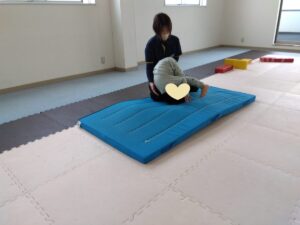 マットでは、ゴロンと転がって行きます