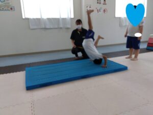 手はしっかりとマットにつけて回りましょう✋