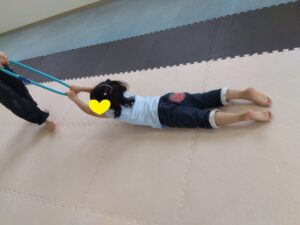うつ伏せになって、ほふく前進のように手を使って進んで行きます👐