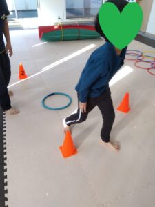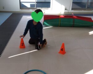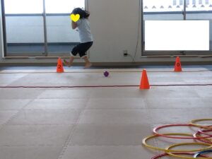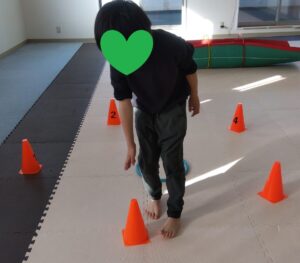 コーンが出てきたときには、コーンをタッチしながら進みましょう✋